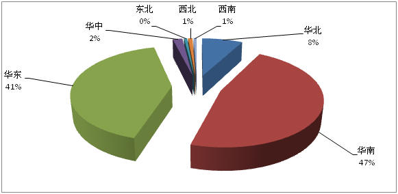 華東地區(qū):490家 華南地區(qū):553家 華北地區(qū):92家 華中地區(qū):22家