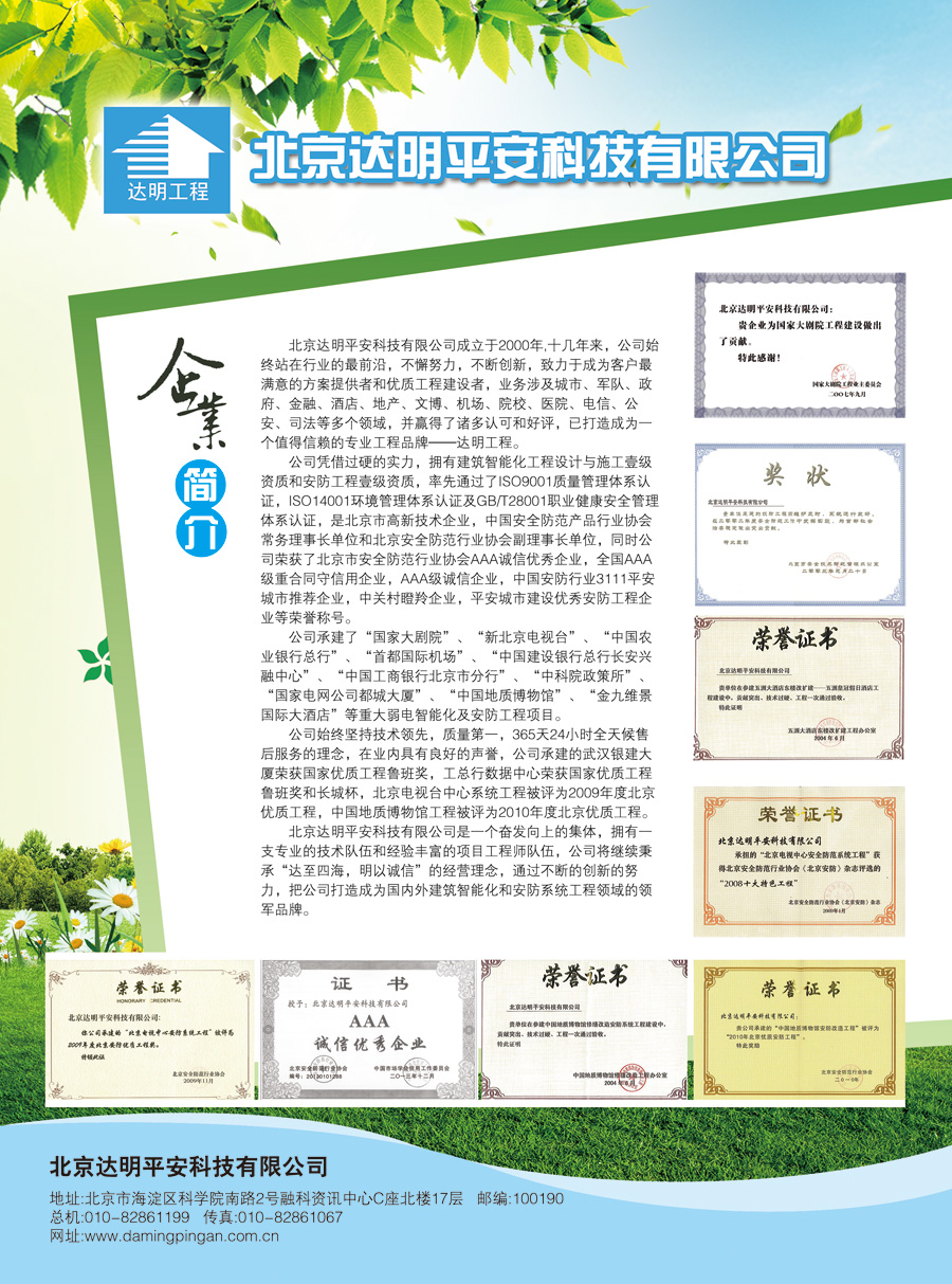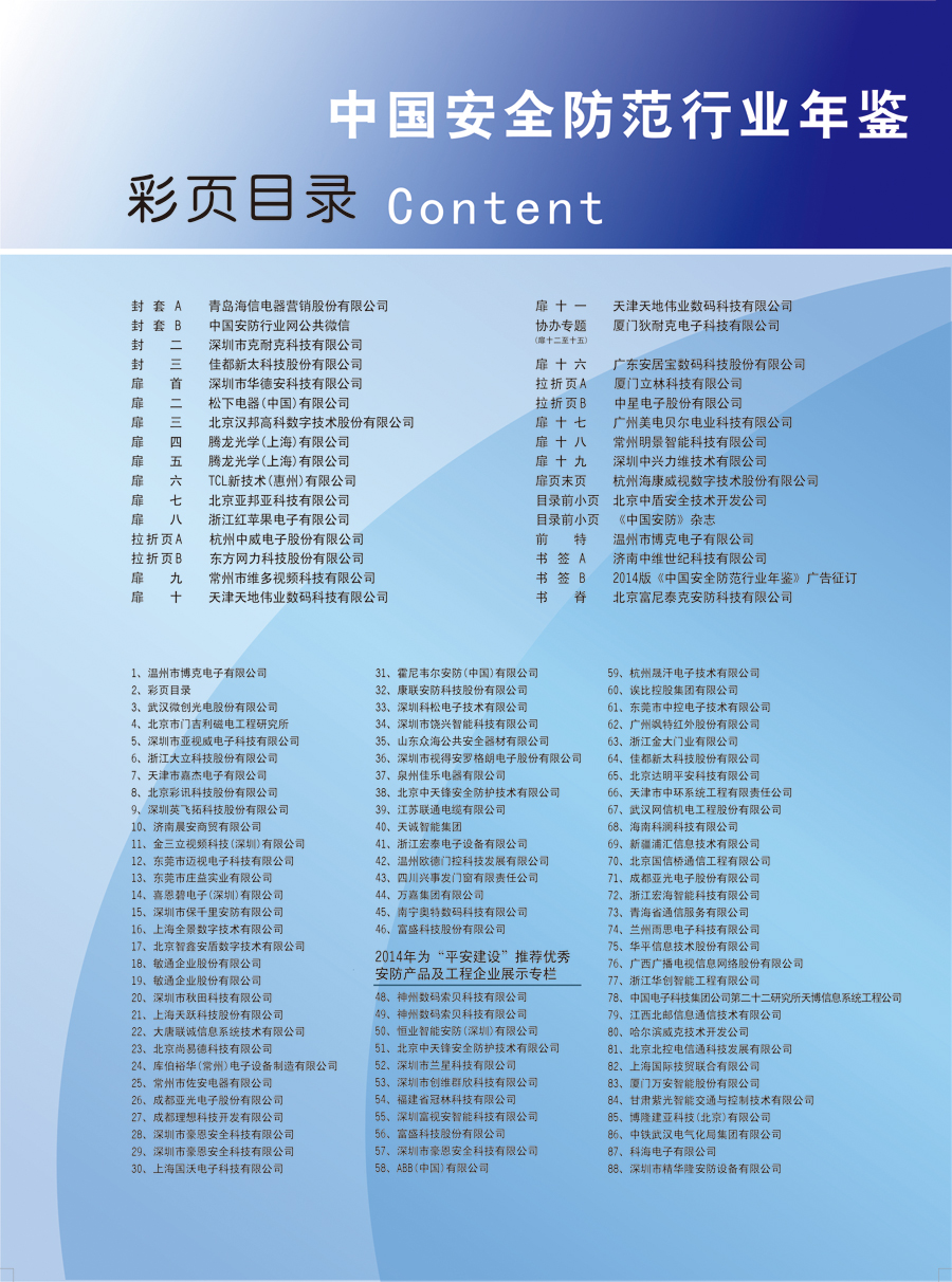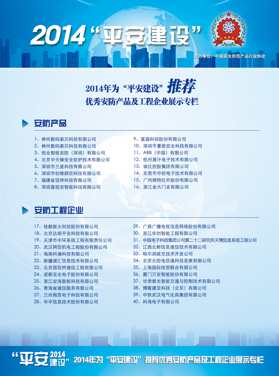 2014年為“平安建設(shè)”推薦優(yōu)秀安防產(chǎn)品及工程企業(yè)展示專欄