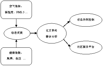 智慧社区的各子系统不仅能独立工作,而且能协同控制,实现各种人、物、事之间信息的综合处理,提供更多的智能化、主动化和个性化服务。未来的智能化控制将涉及多学科领域,通过交叉学科对各种感知信息进行采集、分析、计算,实现设备协同控制,如图7所示。例如,智能家居控制系统将对甲醛、二氧化碳、温度、湿度、PM2.5等各项空气指标进行监测,根据这些指标以及个人习惯对空调和空气净化器进行控制;又如,健康监测系统将对脉搏、血压等各项生命体征进行实时监测,借助云服务平台进行医学综合诊断,及时将健康指数反馈给社区卫生服务站和相关家属。
