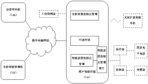 在简单IP楼宇对讲系统的基础上,不断丰富用户智能终端的内涵,以物联网和云技术作为支撑,充分拓展智能手机的应用,形成如图5所示的居家安防智能楼宇对讲系统。