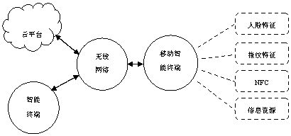 系统通过移动智能终端完成人体体征(人脸特征和指纹特征等)的识别与分析,并将特征信息传送至云服务平台上,供系统内相关终端共享;利用移动智能终端较为友好的编辑界面进行参数和文件编辑,并传送至相关用户智能终端和云平台上,完成相关的参数设置和文件传输;移动智能终端接入智慧社区系统中,将其作为终端平台实现可视对讲以及远程控制等各项功能;利用移动终端自带的NFC(Near Field Communication)功能并结合人体体征完成相关身份验证,提高智慧社区的安保水平。